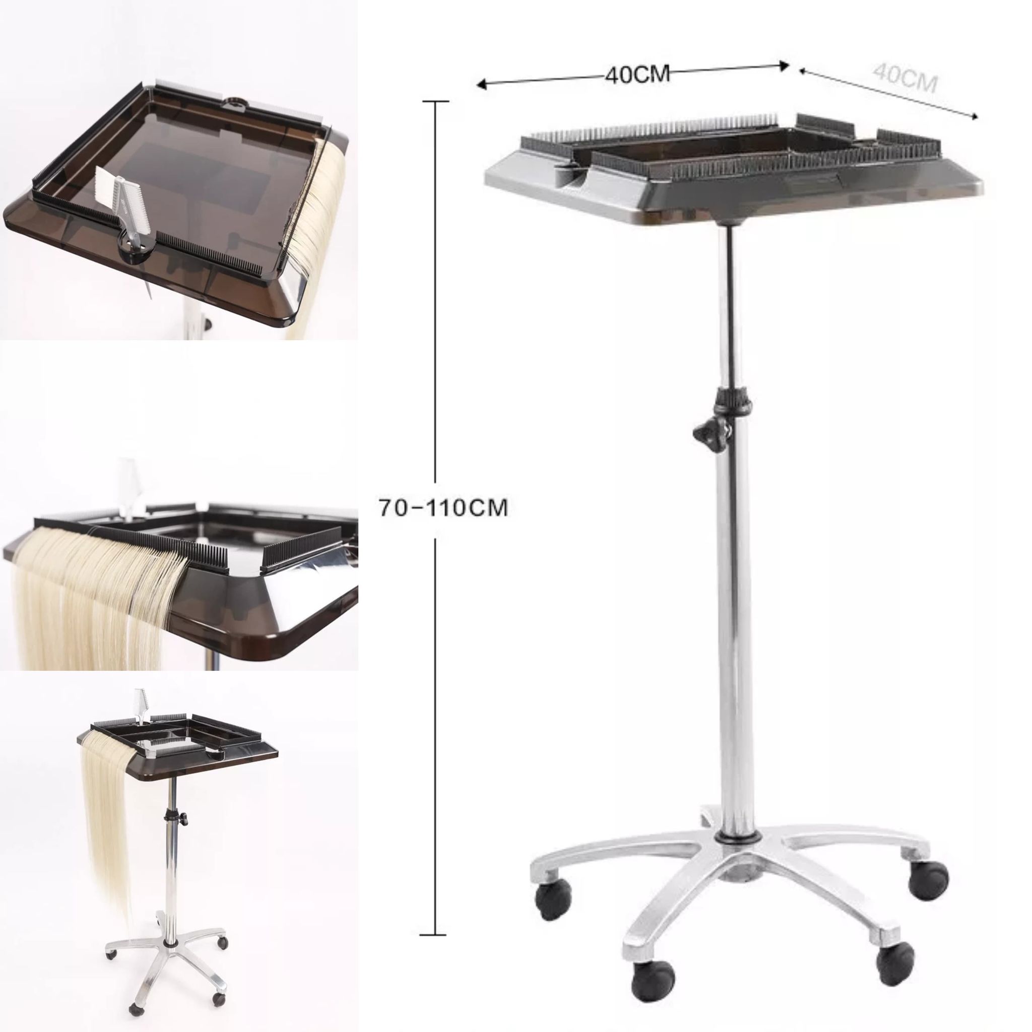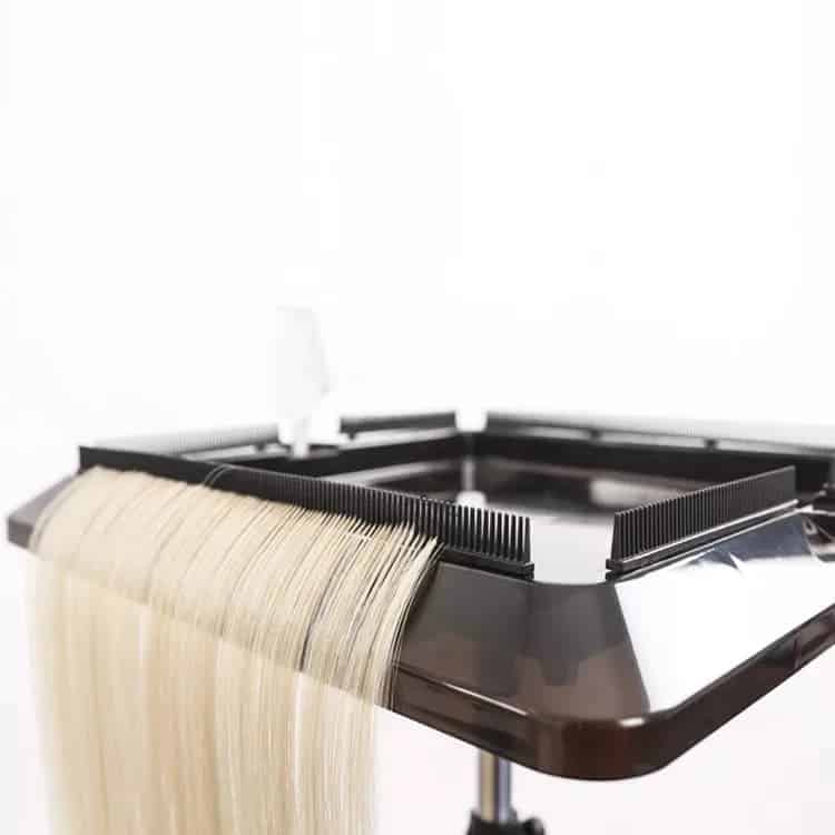Et donc d’être plus rapides! Celui-ci est entouré de peigne pouvant soutenir les extensions capillaires ainsi que 2 sections pour vos outils.